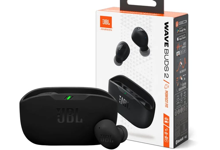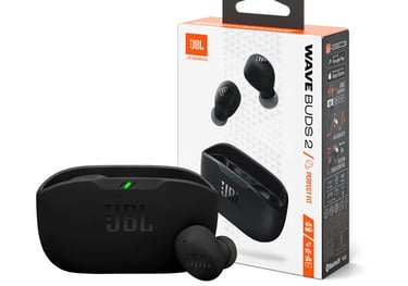 O JBL Wave Buds 2 são earbuds True Wireless com som JBL potente, cancelamento de ruído e ótima autonomia, perfeitos para uso diário com conforto e qualidade.